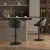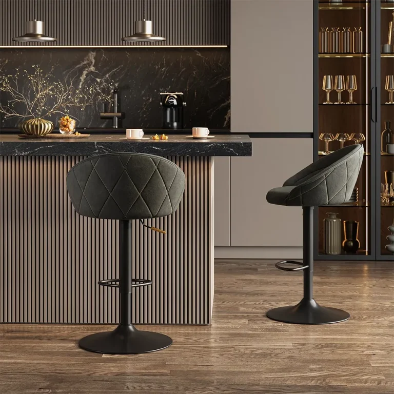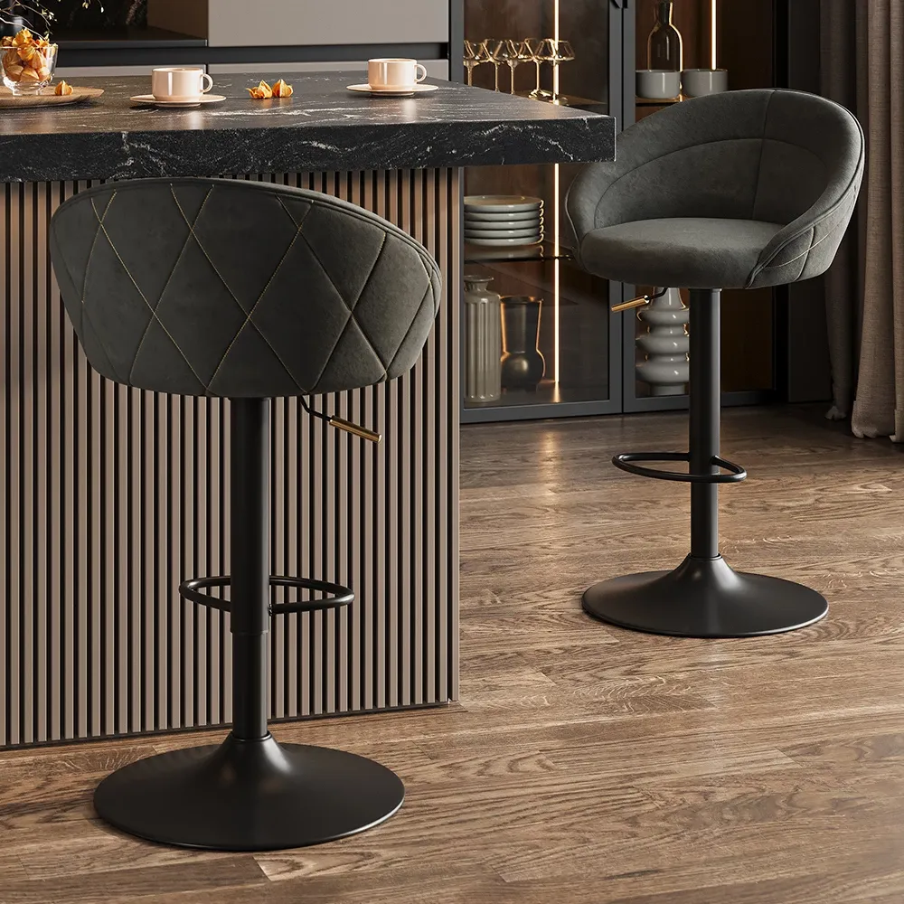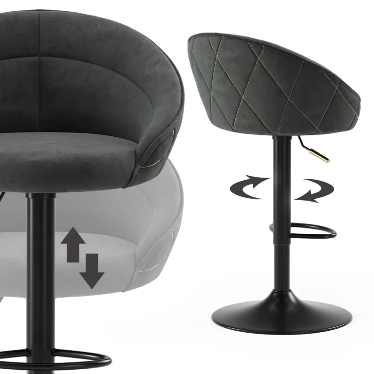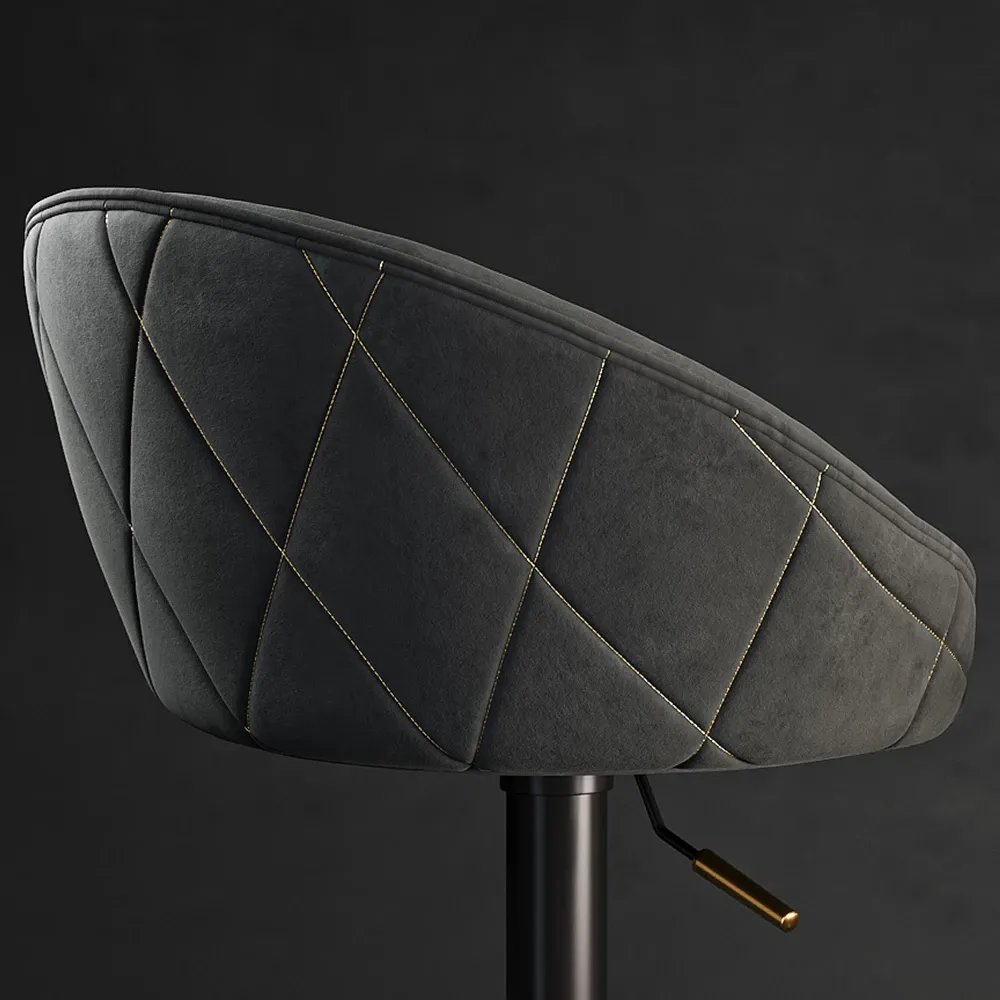 Een stijlvolle barkruk in diepe antraciettint met een moderne, verfijnde uitstraling.
