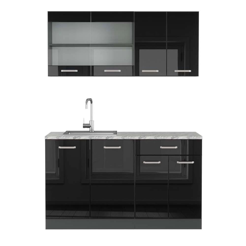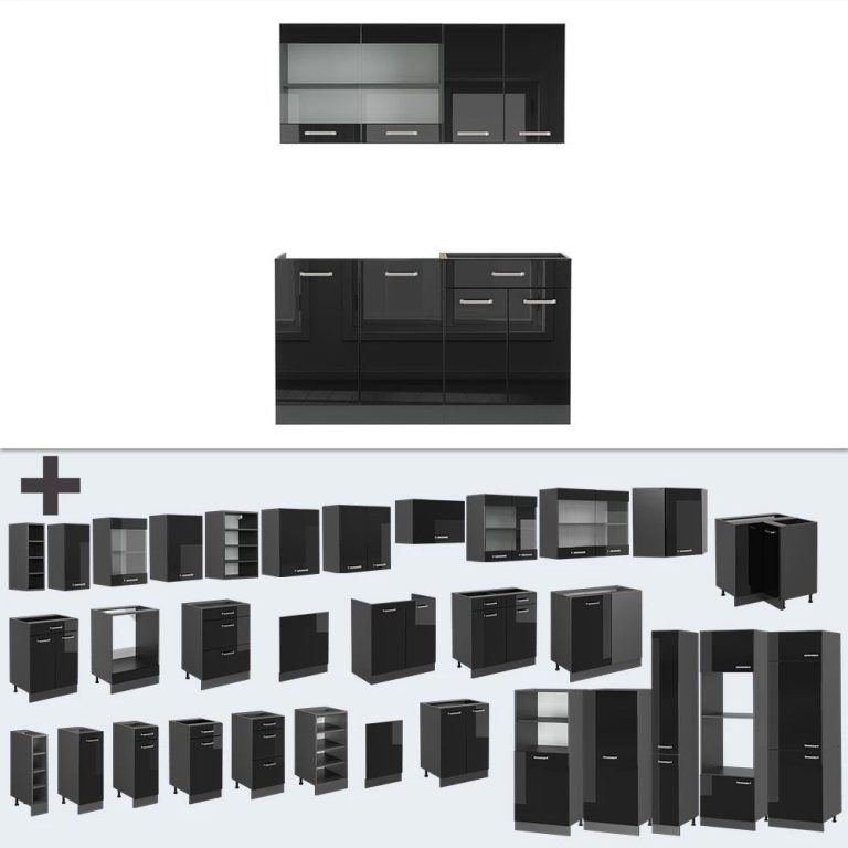 Hoogglans zwart en antraciet creëren een diep, krachtig samenspel met luxueuze uitstraling. Strak, modern en intens verfijnd.