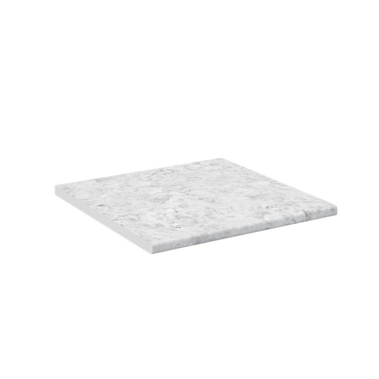 Dit witte & marmerenlook keukenblad combineert een frisse, heldere basis met een verfijnde marmerlook.