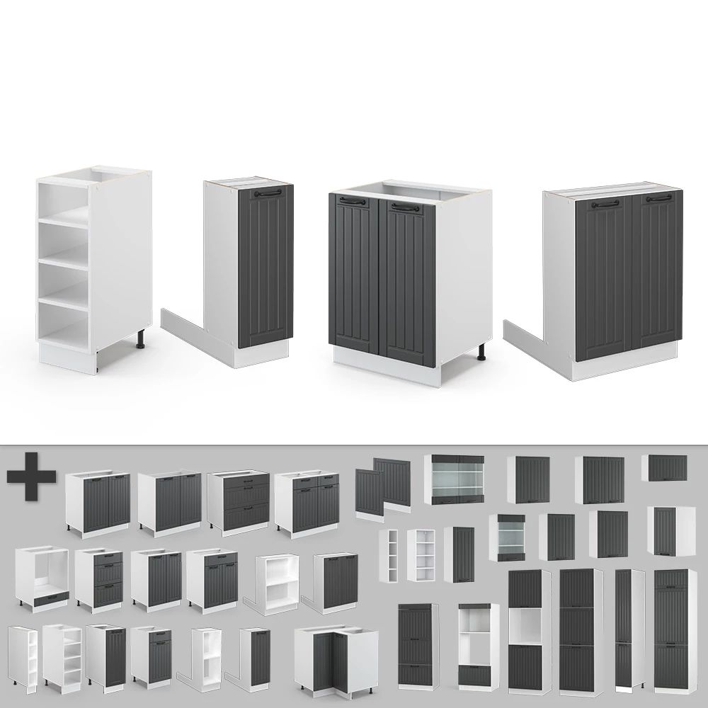 Traditionele landhuislijnen in een krachtige antraciettint.