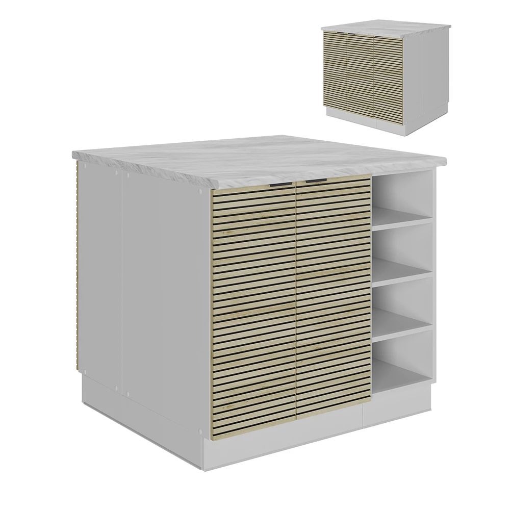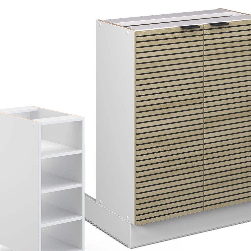Het lijnenspel in het eiken paneel geeft textuur en verfijning.